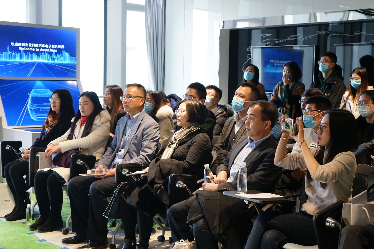 参访现场,校友师生深入了解了四维图新各项成果技术与核心产品业务。首先,校友师生走进自动驾驶体验室,由公司讲解人员对自动驾驶车静态进行介绍,校友师生参观四维图新自动驾驶车并观看讲解视频。对此,校友师生表现出浓厚的兴趣并在参观后积极提问,讲解人员针对师生提问进行专业详细的解答。