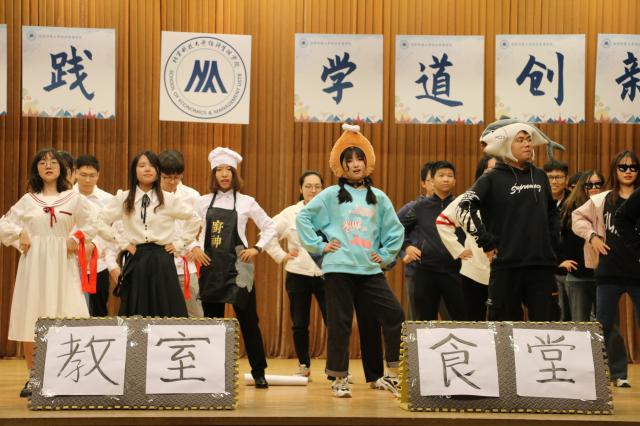 本次答辩会总共有27个班级参加,分为班级答辩展示和评委提问两部分。各班从班级成绩、思想建设、班级活动、主题团日、竞赛获奖、江南(中国)等方面展示。数不胜数的创新创业竞赛奖项,四六级通过率100%,全员奖学金、班级零挂科……均为班级同学取得的学习成果;部分班级通过照片墙、视频等创意设计在文化建设、班级建设方面展现特色亮点;还有班级精心准备了节目,用歌舞表演、说唱、朗诵、舞台情景剧、新闻联播等形式,展现班级的活力,让现场气氛达到高潮。