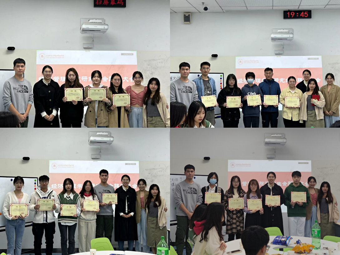会上,管理职能中心、学术科技中心、媒体运营中心、文体组织中心的分管主席依次发言,介绍各部门职能、部门成员、工作经验和特色活动,并为新成员颁发聘书、合影留念。