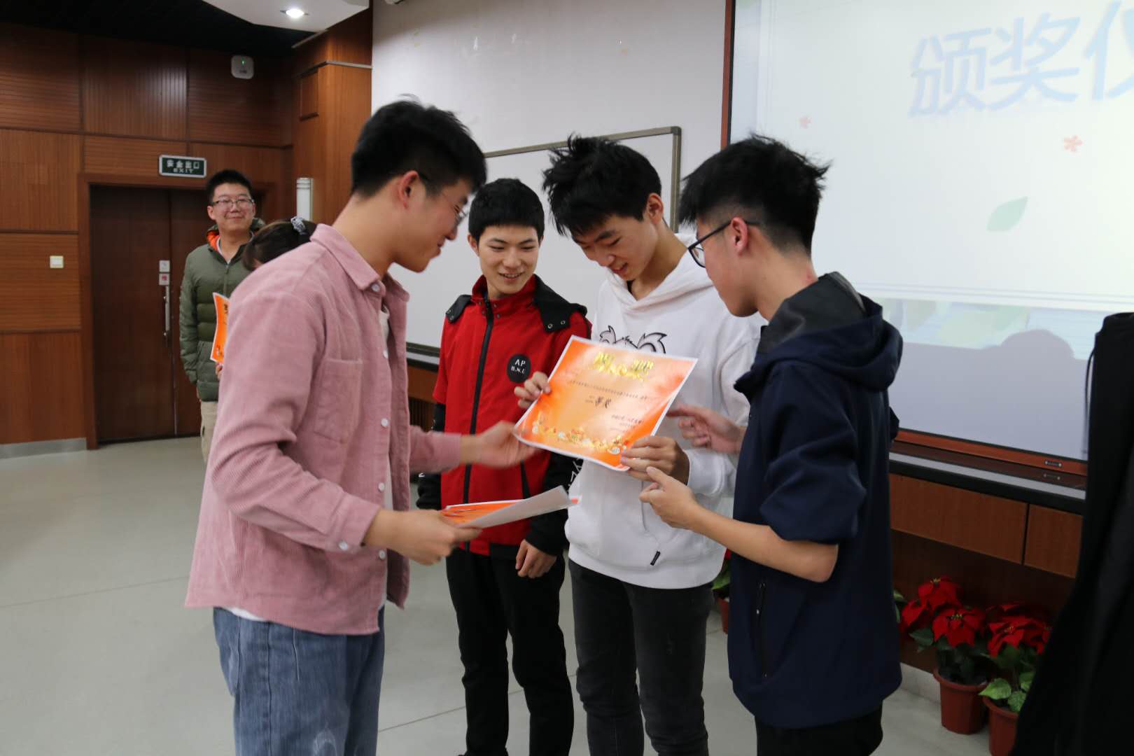 在精彩的比赛之后,2020级本科辅导员邹艺老师为本次比赛的冠亚季军颁发奖状,在场全体观众和选手为冠军队伍录制了校赛加油视频,希望他们可以拥有好的成绩。