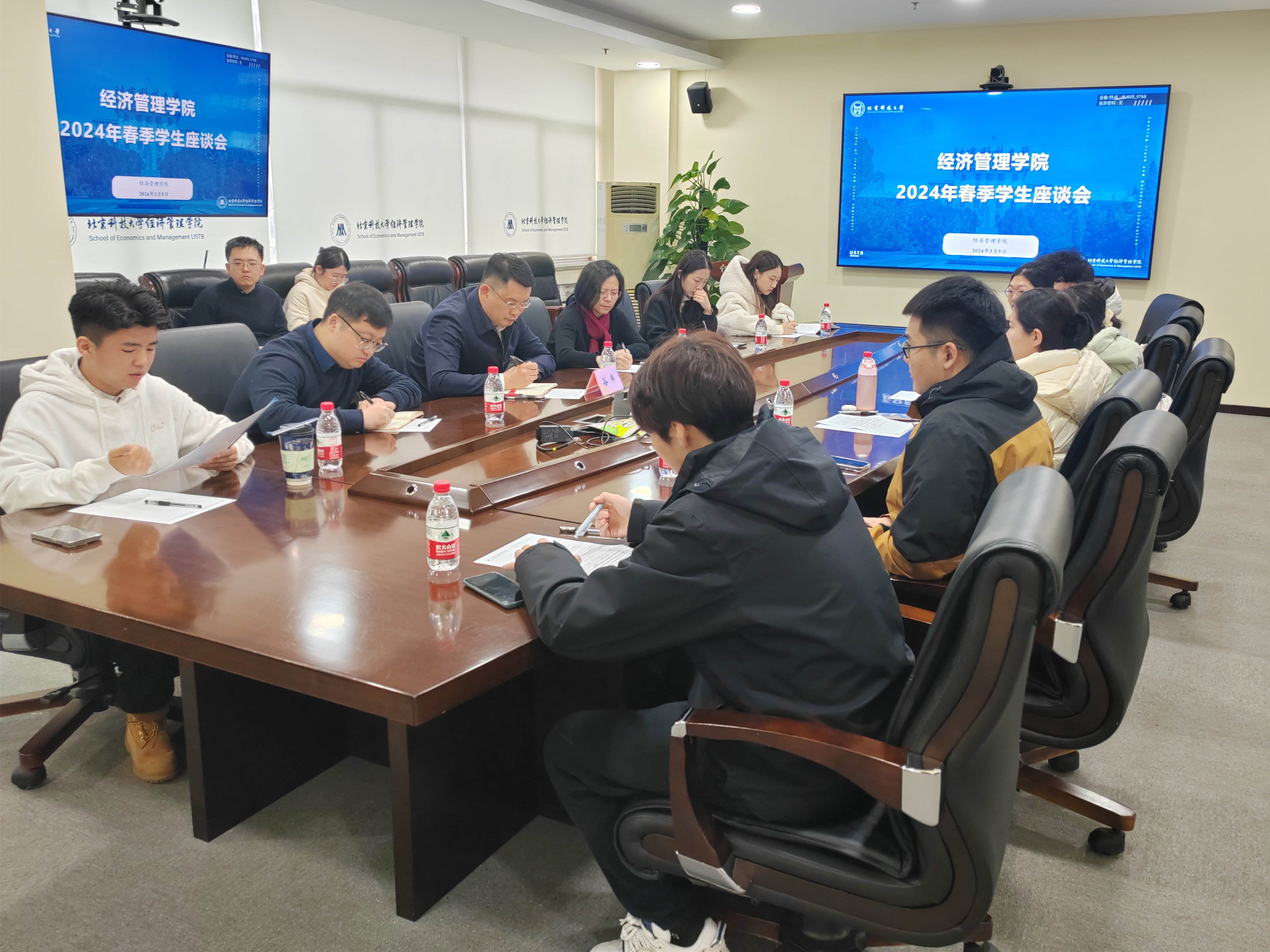 3月5日,江南在线注册2024年春季学期座谈会在经管楼809会议室举办。院长谷炜,党委书记武森,党委副书记、副院长杨志达,各年级辅导员代表、学生代表出席。座谈会由杨志达主持。